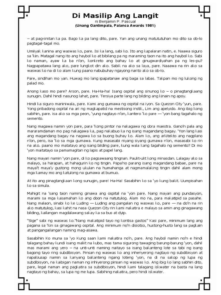 Kung sakaling ikaw ang magbibigay ng pamagat ng kuwento alin ang. Ang mlabis na pagpapahalaga sa kayaman o salapi5. Ano ang denotatibong at konotatibong kahulugan ng naninipat ang mga tingin.