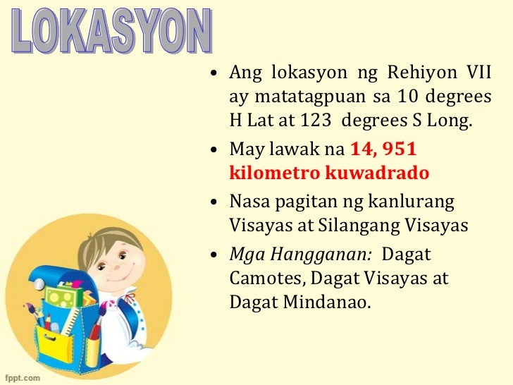 Rehiyon anong mga aspekto ang iyong isasaalang-alang sa paghahati ng bawat rehiyon. 3112021 Ano anong kaugalian ang ipinagdiriwang ng mga taga rehiyon 7 - 12183907 majocelyndeniega35 majocelyndeniega35 11032021 Filipino Senior High School answered Ano anong kaugalian ang ipinagdiriwang ng mga taga rehiyon 7 1 See answer valdemoroabigail7 valdemoroabigail7 Answer. Anong lalawigan sa rehiyon 7 matatagpuan ang malawak n kapatagan.